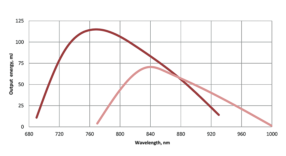 | Max pump energy at 532 nm, mJ | 100 | 500 | |
