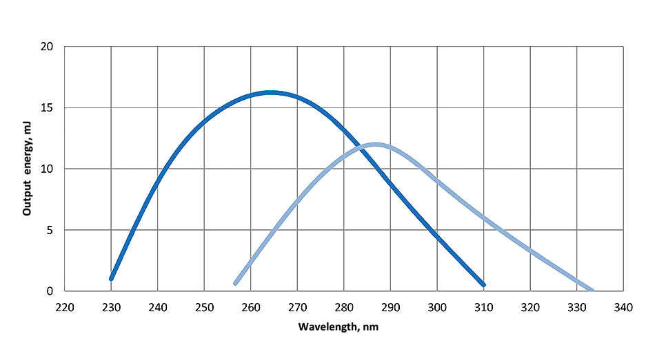 upon your choice. If you need tuneable UV output you always can supplement the LX329 with the THG or FHG modules which will ensure tuning within the range from 210 to 320 nm.