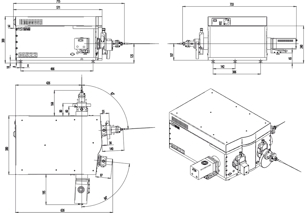 The M522 monochromator-spectrograph has a wide range of options and accessories that provide efficient light collection from the sample located at a finite distance and at infinity, delivering light to the monochromator with and without an optical fiber, effective aperture matching of the optical fiber and monochromator.