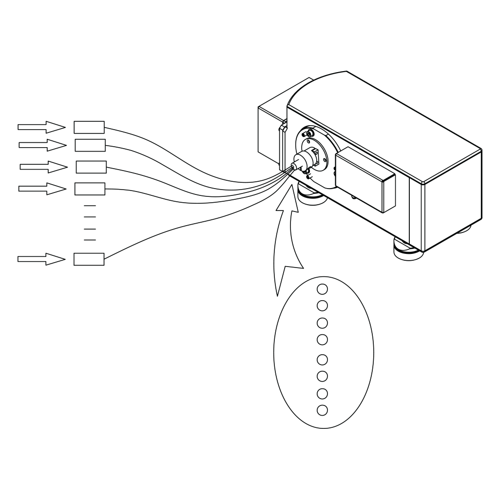 S200-MF: схема одновременной регистрации спектров от нескольких световодов.