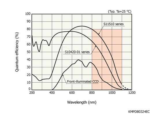 Спектральная кривая чувствительности детектора back-thinned CCD модели S10420-1106