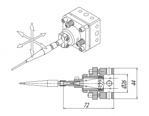 Широкоапертурное устройство сбора излучения с образца, расположенного на расстоянии 29мм. Предназначен для сбора излучения от образца в широком апертурном угле и передачи его в оптическое волокно либо на входную щель спектрального прибора. Состоит из мениска и двух объективов-ахроматов.