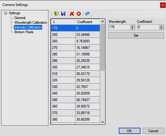 При заказе спектрометра, калиброванного по интенсивности, в программном обеспечении SolarLS.LAB будет содержаться таблица калибровочных коэффициентов для перерасчёта отсчётов АЦП в спектральную энергетическую освещённость. При желании, Вы можете использовать собственную калибровочную таблицу